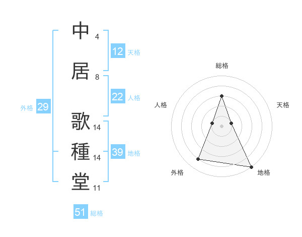 中居 歌種堂さんを姓名の画数から五運を鑑定