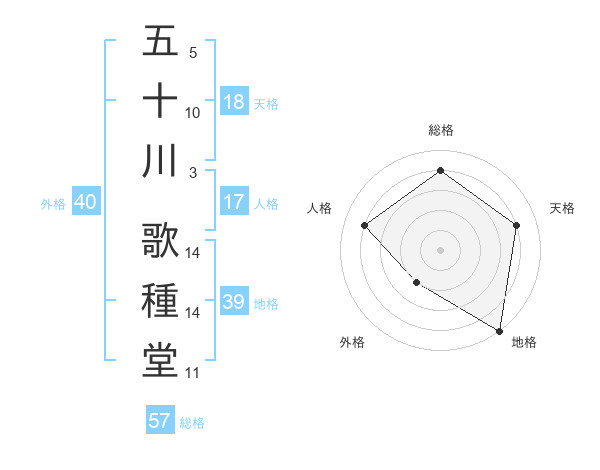 五十川 歌種堂さんを姓名の画数から五運を鑑定