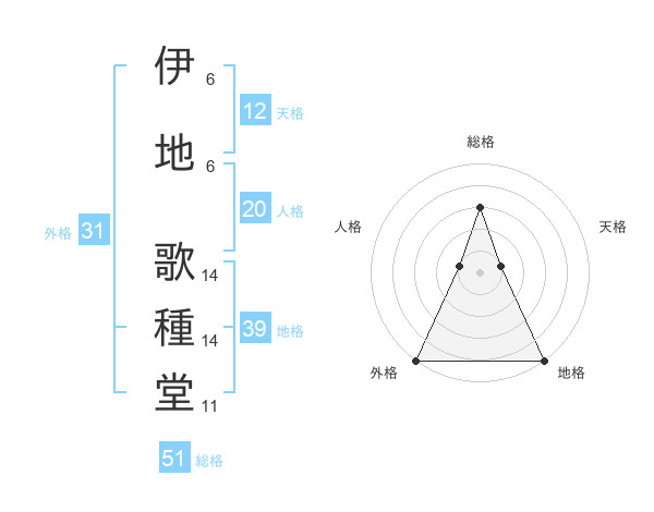 伊地 歌種堂さんを姓名の画数から五運を鑑定
