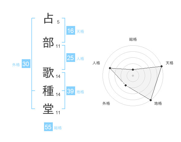 占部 歌種堂さんの総格は55画の1点!