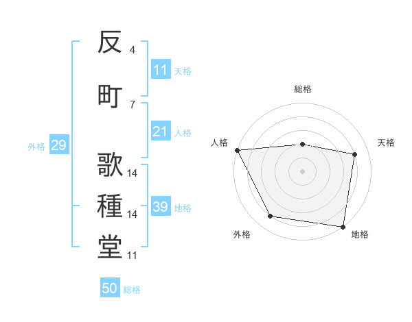 反町 歌種堂さんの総格は50画の2点!
