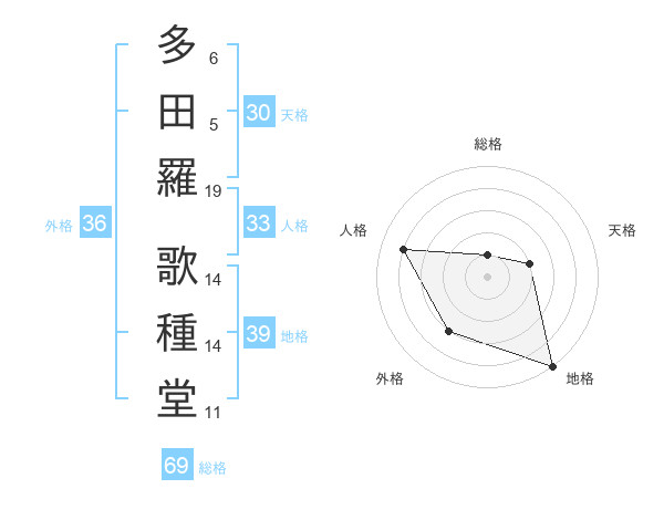 多田羅 歌種堂さんを姓名の画数から五運を鑑定