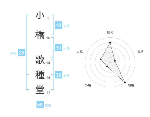 小橋 歌種堂さんの総格は58画の4点