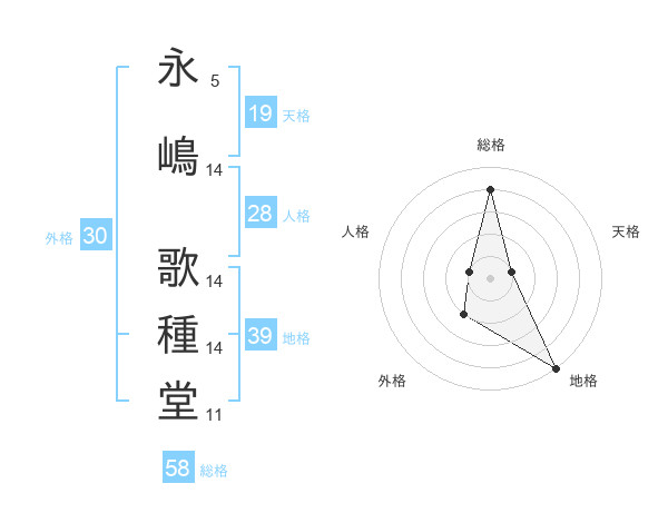 永嶋 歌種堂さんの総格は58画の4点!