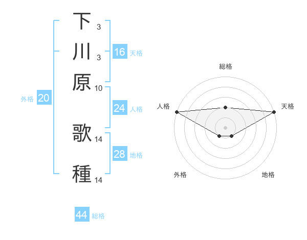 下川原 歌種さんの総格は44画の2点!