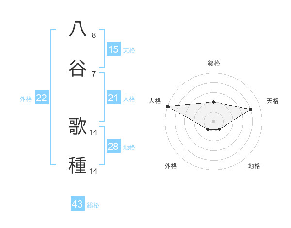 八谷 歌種さんを姓名の画数から五運を鑑定