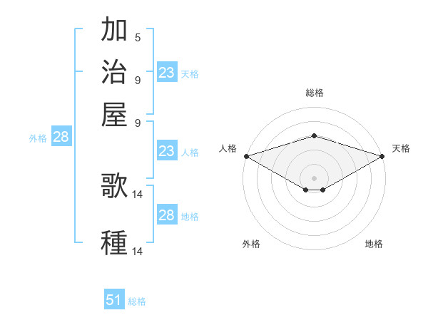 加治屋 歌種さんを姓名の画数から五運を鑑定