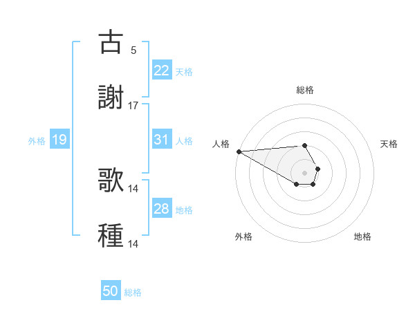古謝 歌種さんを姓名の画数から五運を鑑定