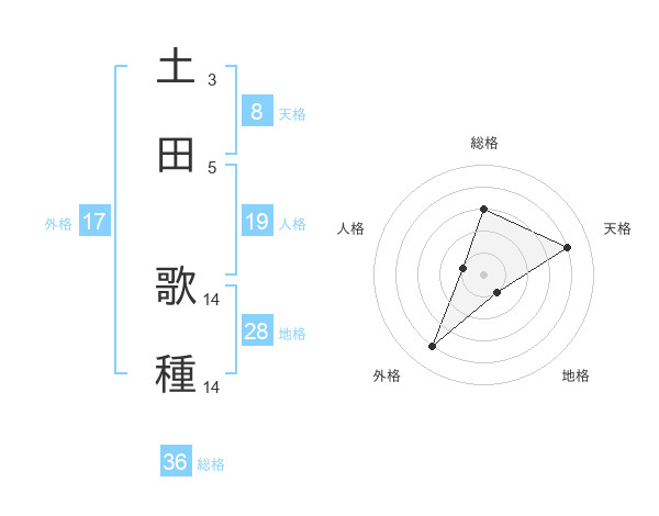土田 歌種さんの総格は36画の3点!