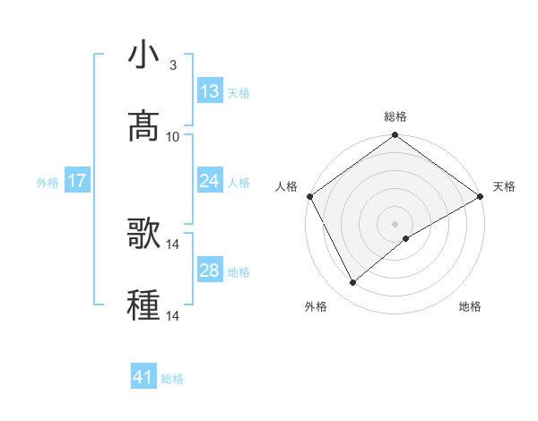 小髙 歌種さんを姓名の画数から五運を鑑定