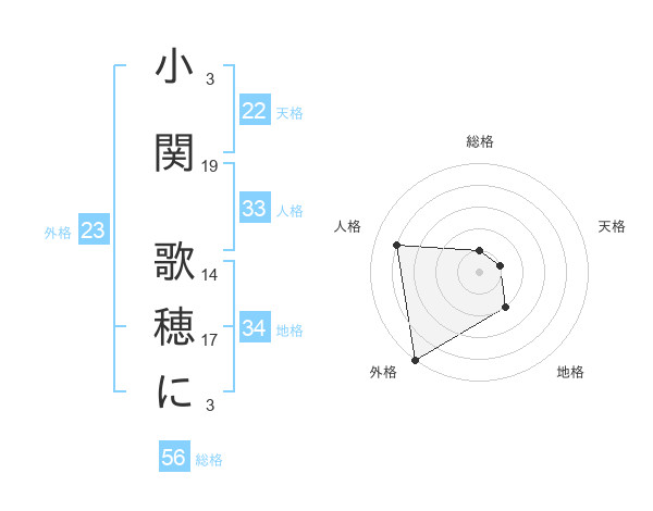 小関 歌穂にさんを姓名の画数から五運を鑑定