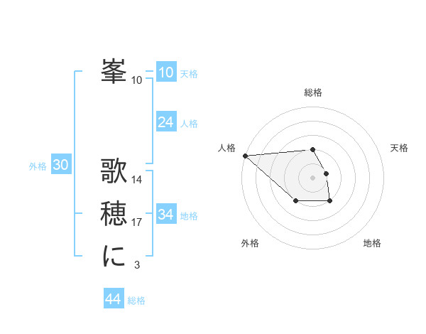 峯 歌穂にさんを姓名の画数から五運を鑑定