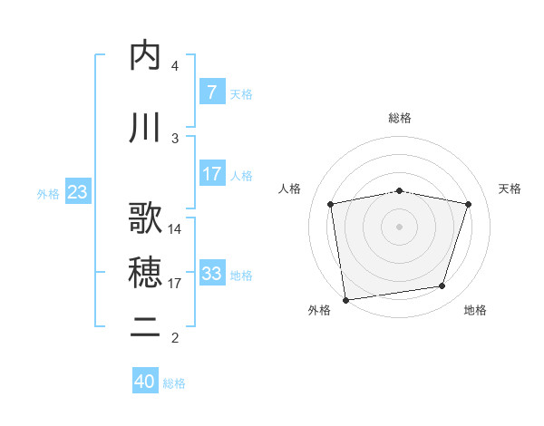 内川 歌穂ニさんを姓名の画数から五運を鑑定
