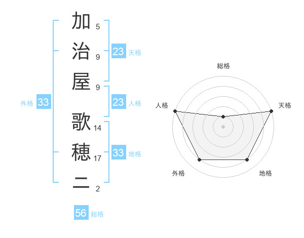 加治屋 歌穂ニさんの天格は23画の5点!