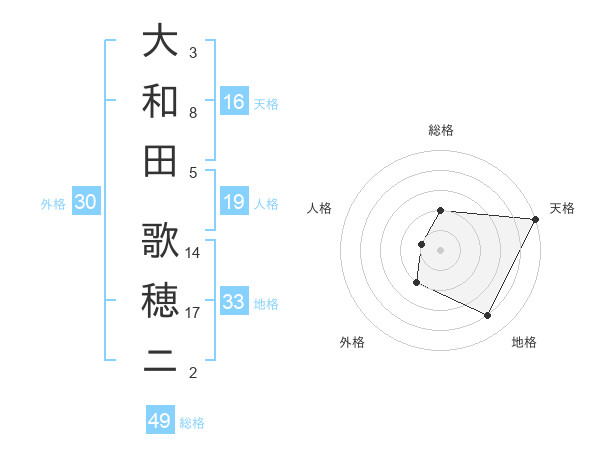 大和田 歌穂ニさんを姓名の画数から五運を鑑定