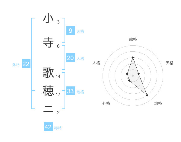 小寺 歌穂ニさんを姓名の画数から五運を鑑定