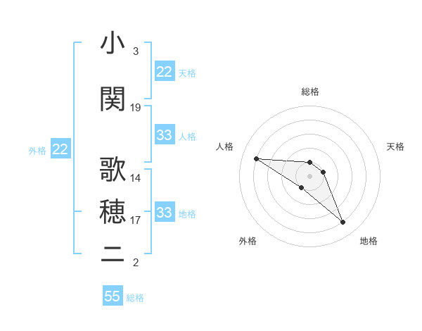 小関 歌穂ニさんを姓名の画数から五運を鑑定
