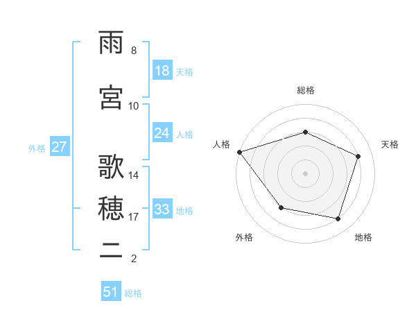 雨宮 歌穂ニさんを姓名の画数から五運を鑑定