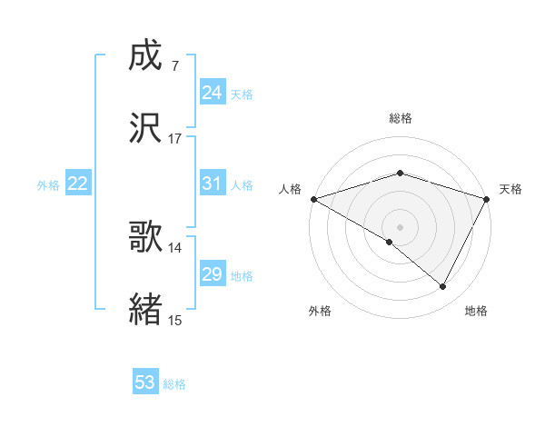 成沢 歌緒さんの総格は53画の3点!
