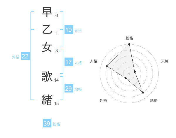 早乙女 歌緒さんを姓名の画数から五運を鑑定