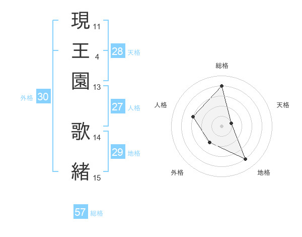 現王園 歌緒さんを姓名の画数から五運を鑑定