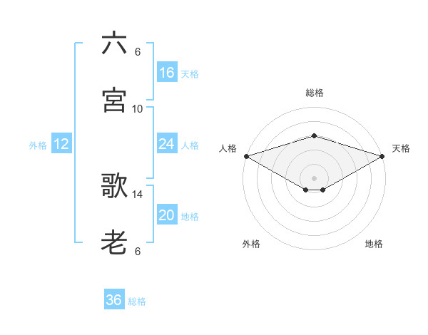 六宮 歌老さんの総格は36画の3点!