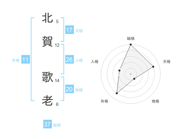 北賀 歌老さんの総格は37画の5点!