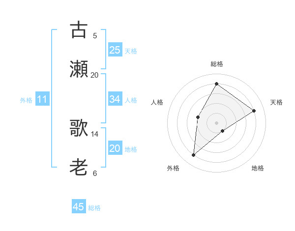 古瀬 歌老さんを姓名の画数から五運を鑑定
