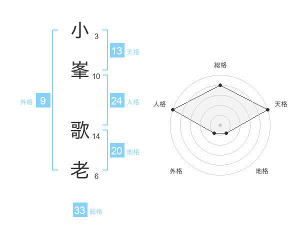 小峯 歌老さんを姓名の画数から五運を鑑定
