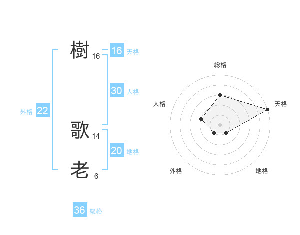 樹 歌老さんの総格は36画の3点!