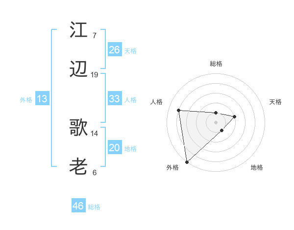 江辺 歌老さんの総格は46画の1点!