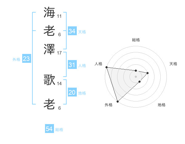 海老澤 歌老さんを姓名の画数から五運を鑑定