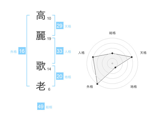 高麗 歌老さんを姓名の画数から五運を鑑定