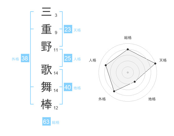 三重野 歌舞棒さんを姓名の画数から五運を鑑定