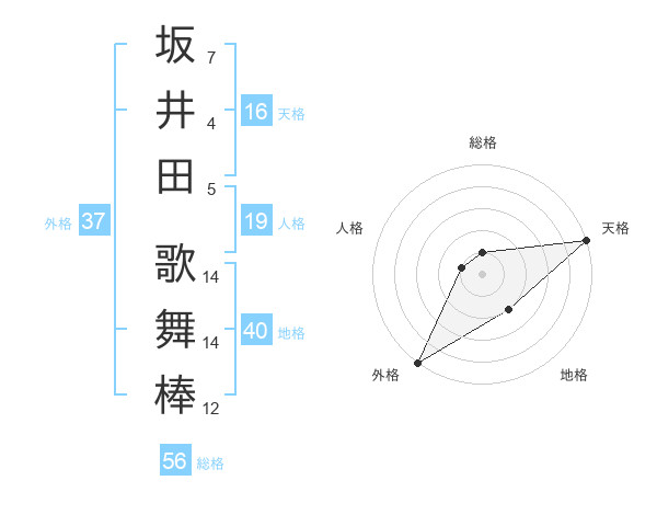 坂井田 歌舞棒さんを姓名の画数から五運を鑑定