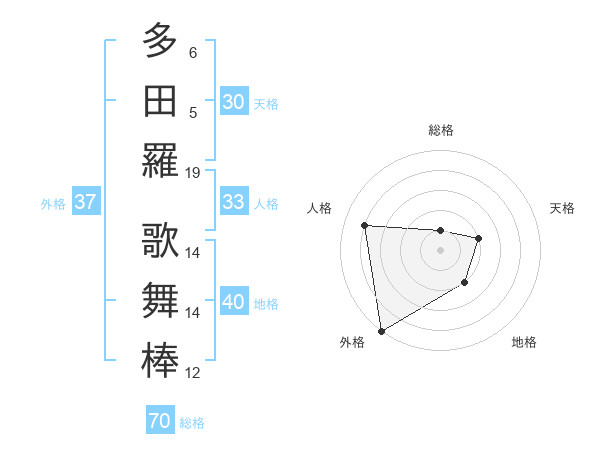 多田羅 歌舞棒さんの総格は70画の1点!