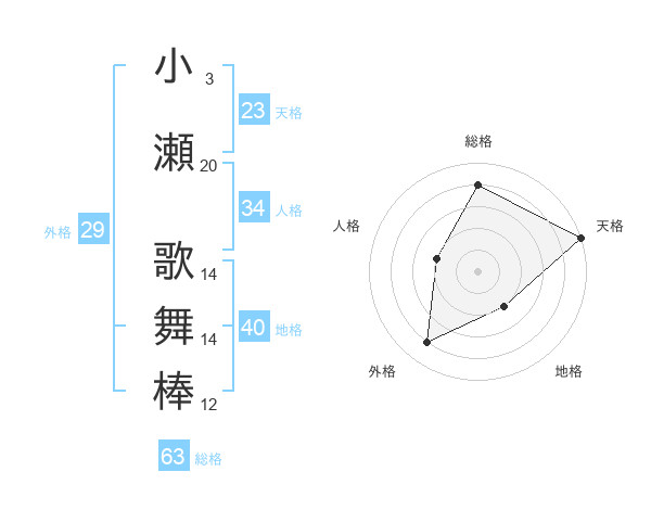 小瀬 歌舞棒さんの総格は63画の4点!