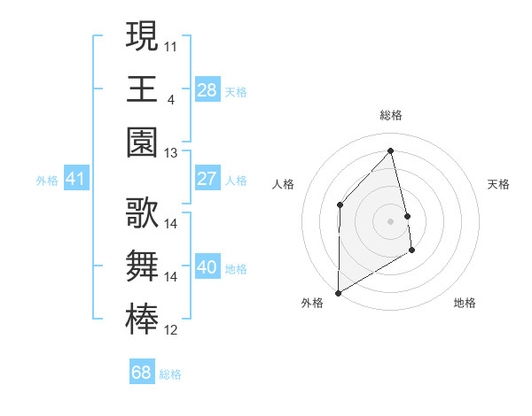 現王園 歌舞棒さんの総格は68画の4点!