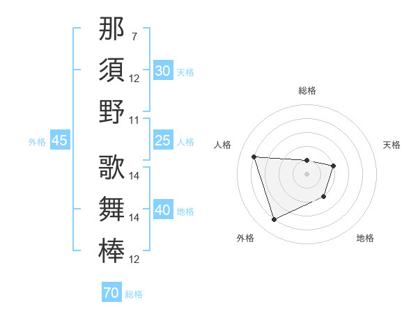 那須野 歌舞棒さんの総格は70画の1点!