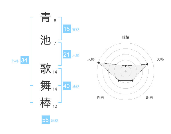 青池 歌舞棒さんの総格は55画の1点!