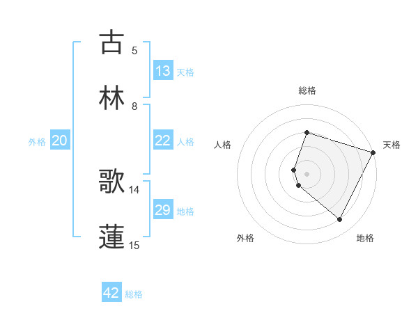 古林 歌蓮さんを姓名の画数から五運を鑑定