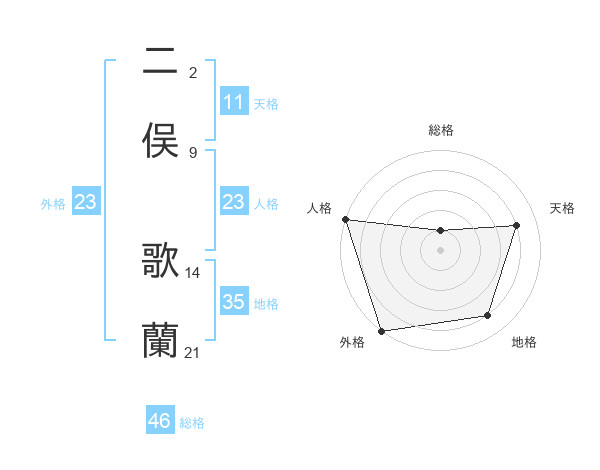 二俣 歌蘭さんの外格は23画の5点!