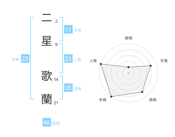 二星 歌蘭さんを姓名の画数から五運を鑑定
