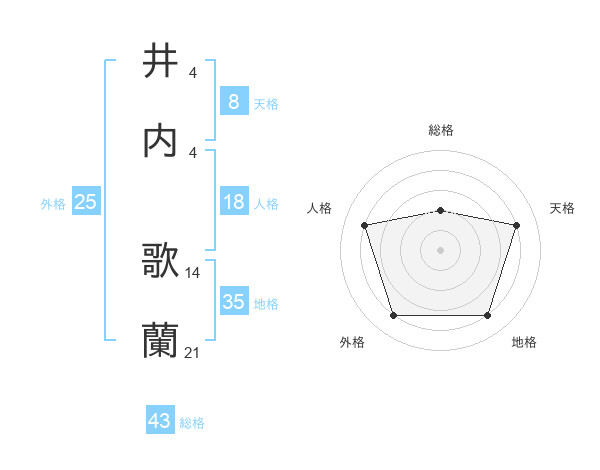 井内 歌蘭さんを姓名の画数から五運を鑑定