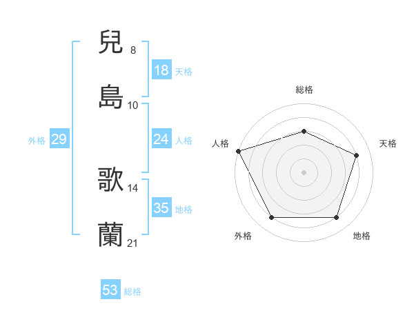 兒島 歌蘭さんの総格は53画の3点!