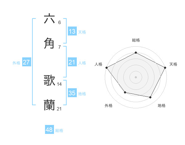 六角 歌蘭さんの天格は13画の5点!