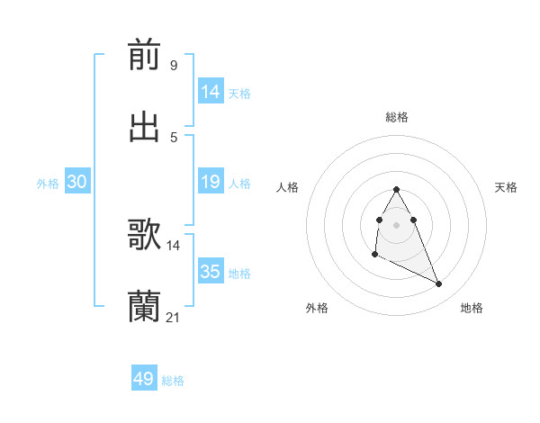 前出 歌蘭さんを姓名の画数から五運を鑑定