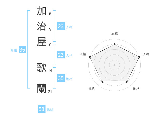 加治屋 歌蘭さんを姓名の画数から五運を鑑定