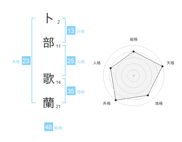 卜部 歌蘭さんの天格は13画の5点!