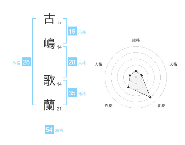 古嶋 歌蘭さんを姓名の画数から五運を鑑定
